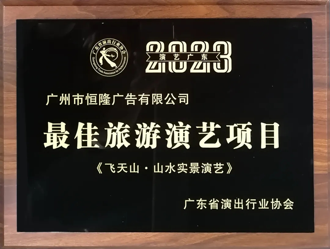 恒隆娛樂申報的《飛天山·山水實景演藝》榮獲 廣東演藝2023“最佳旅游演藝項目。